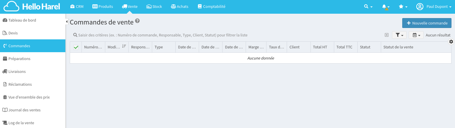Cliquez sur Nouvelle commande.