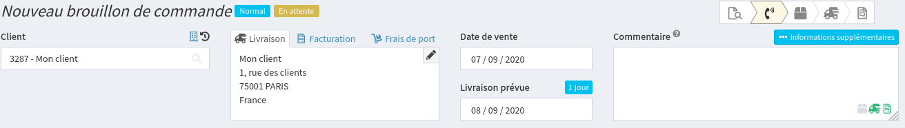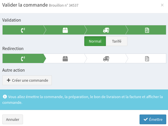 Il est possible, selon votre manière de travailler, de ne valider que la commande, ou de considérer que plusieurs étapes sont déjà accomplies.