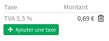 Si vous souhaitez modifier les taxes de votre produit, vous pouvez ajouter et supprimer des taxes avec les boutons Ajouter une taxe et du tableau des taxes dans le pied-de-page.