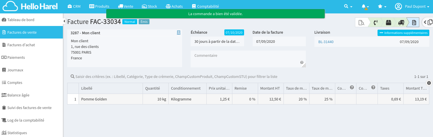 Valider une commande de vente